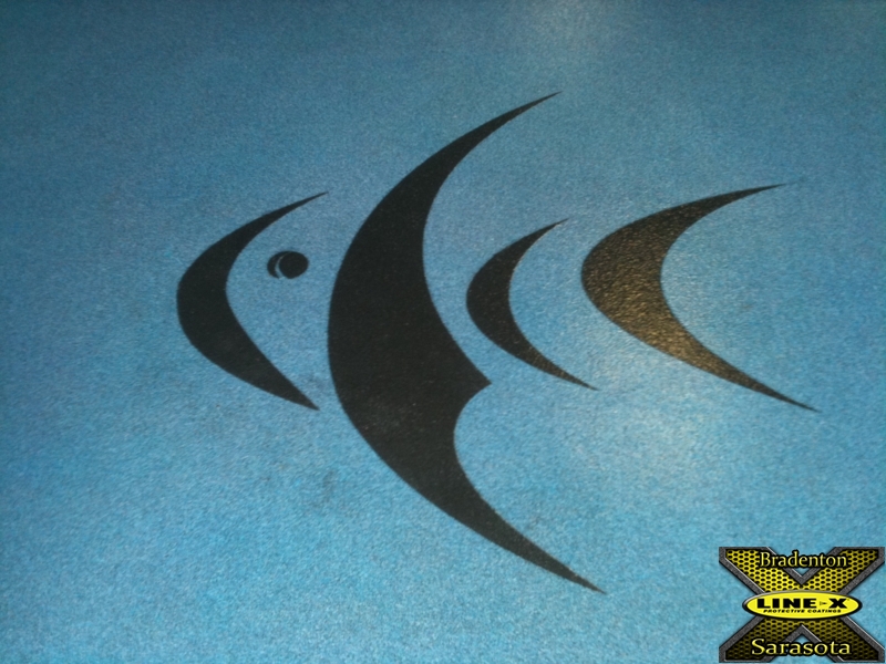 Quartz was an ideal solution for the Marine Dreams floor. You can imagine the potential for slip and fall accidents in a saltwater aquarium store. Quartz provides a durable colorfast floor that provides a high level of non-skid and is available in multiples of color combinations. I invited the owners of Marine Dreams to the Line-X shop to see first hand the durability of Aspart-X in use at our facility! Aspart-X is available in solid color, chip, & quartz floor systems. We also have the ability to sit down with the customer and blend the colors to their choosing right on the spot!
