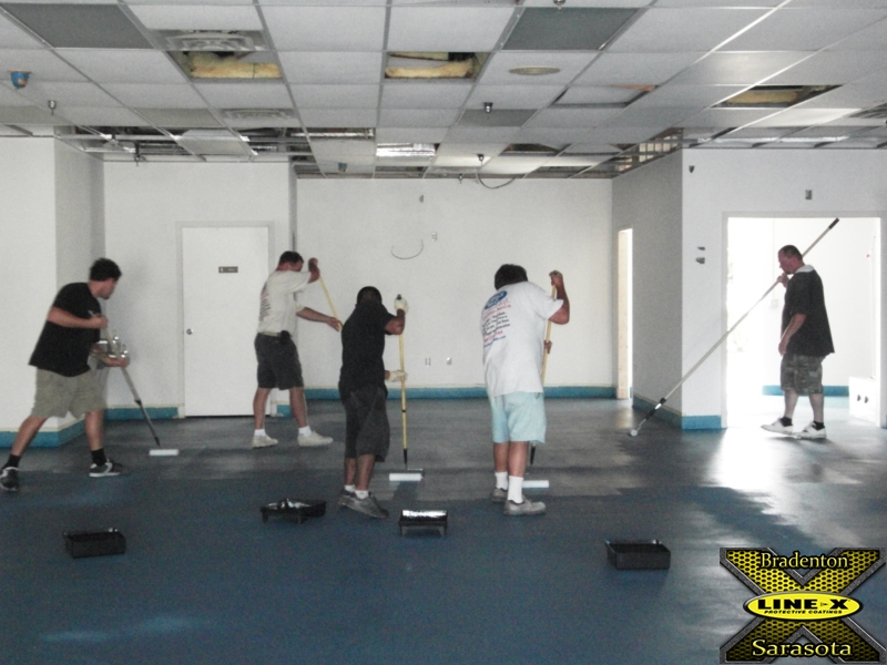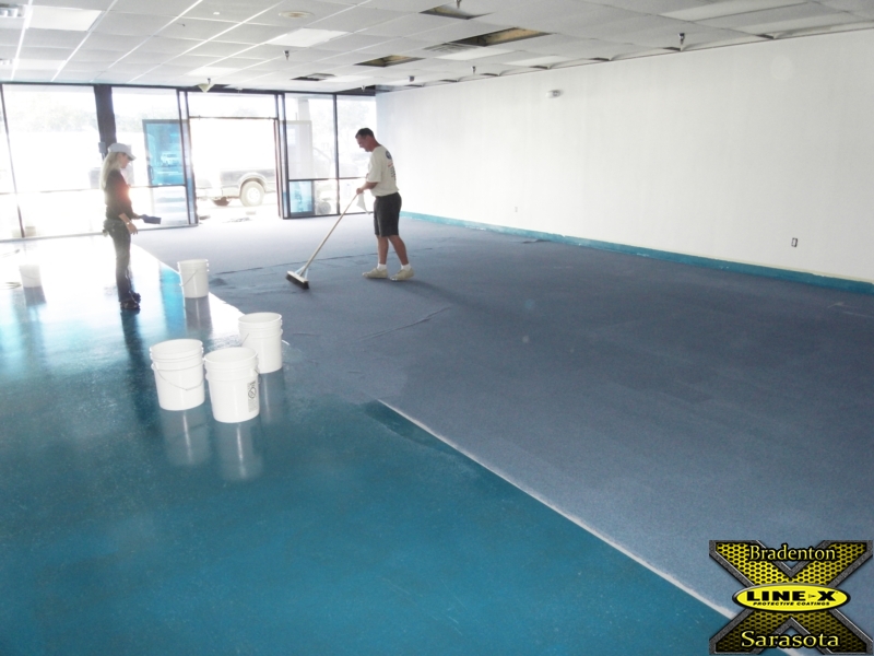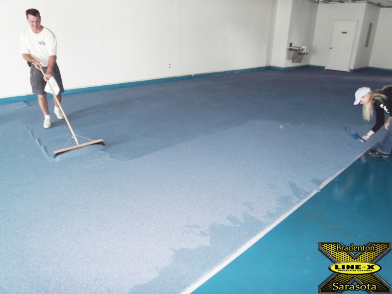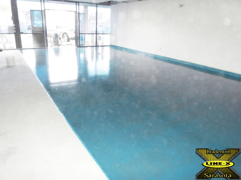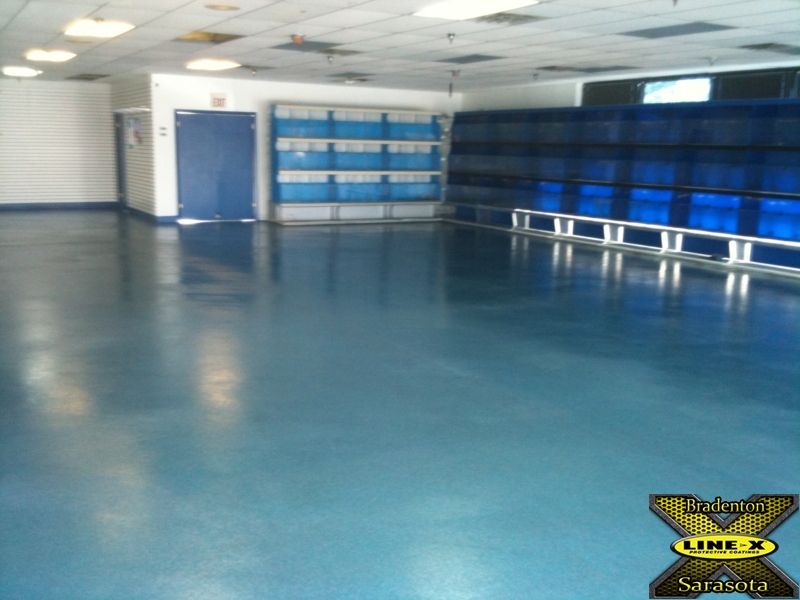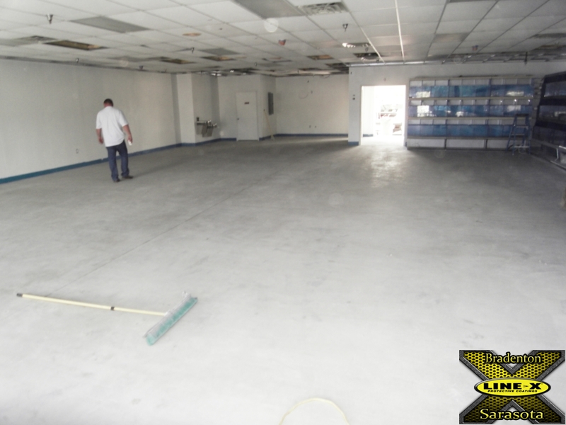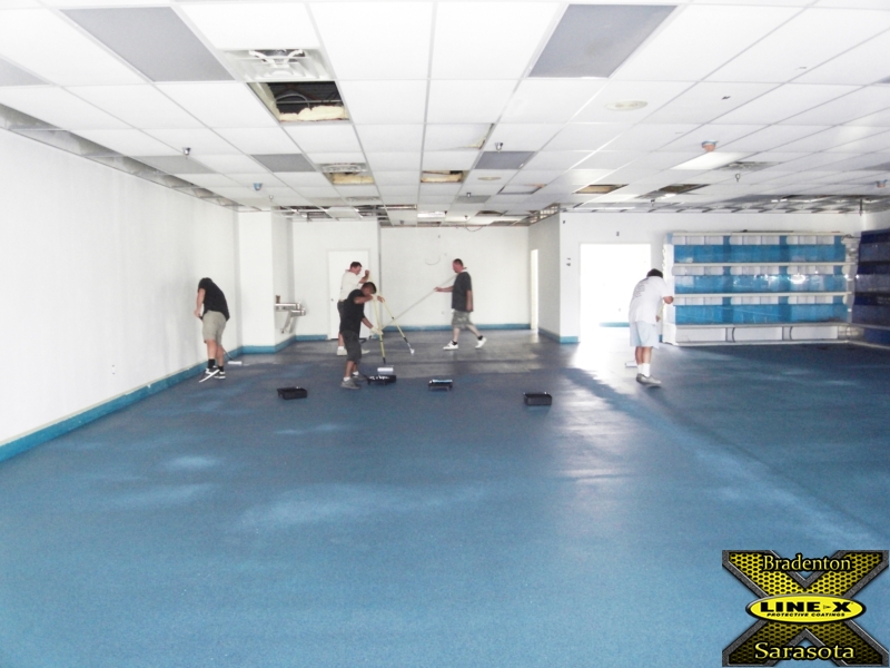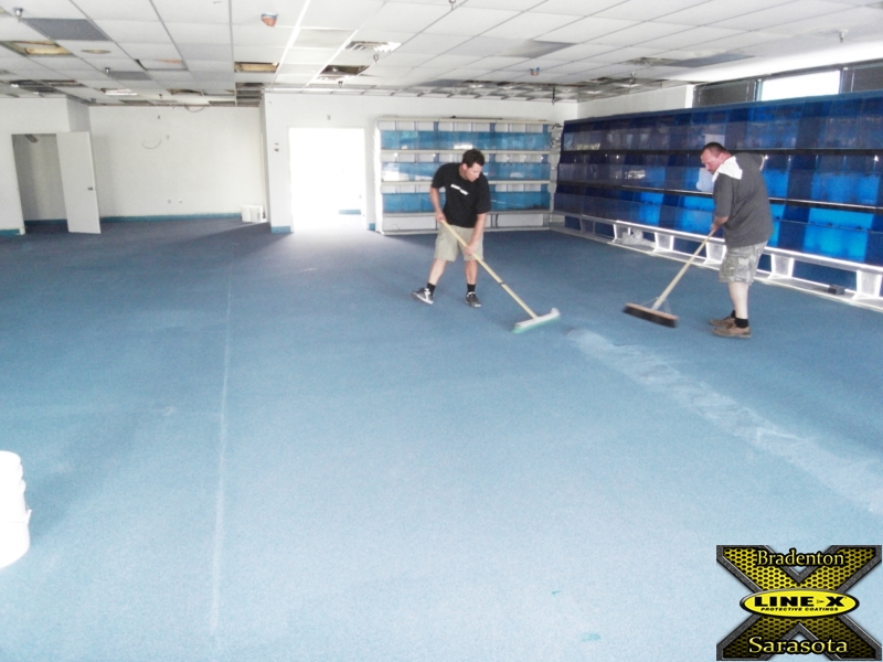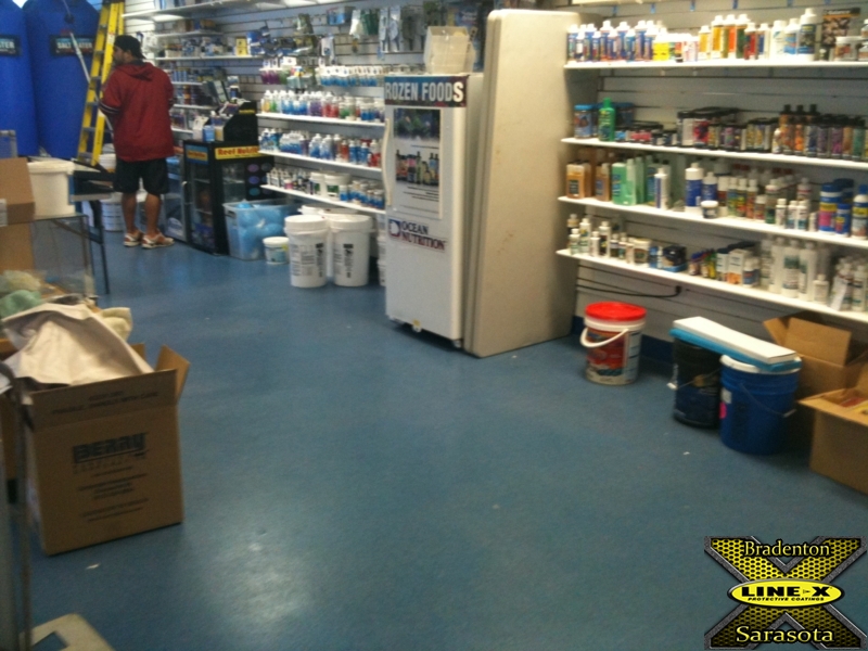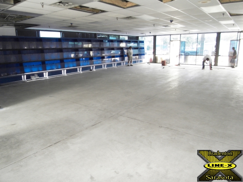 Marine Dreams of Bradenton Florida has been a valuable customer to Line-X for the past few years. We have sprayed aquarium stands with Line-X to protect and seal the wood against the harsh and unforgiving salt water. Marine Dreams recently relocated their shop, and hired Line-X to complete a high performance floor to compliment the beautiful aquarium showroom. Line-X was hired to develop and complete a seamless multi-build quartz flooring system using the new Aspart-X flooring technology by Line-X
